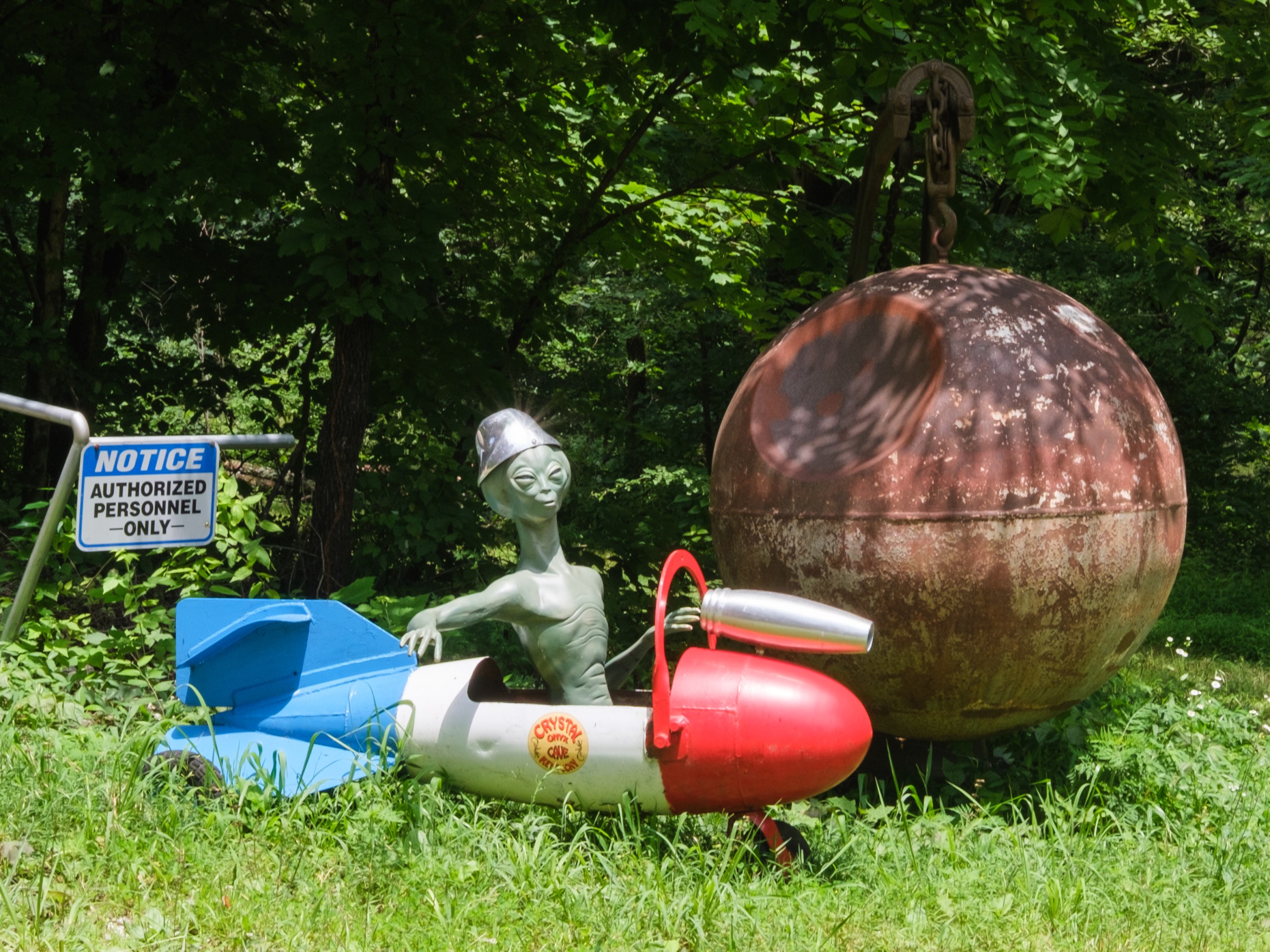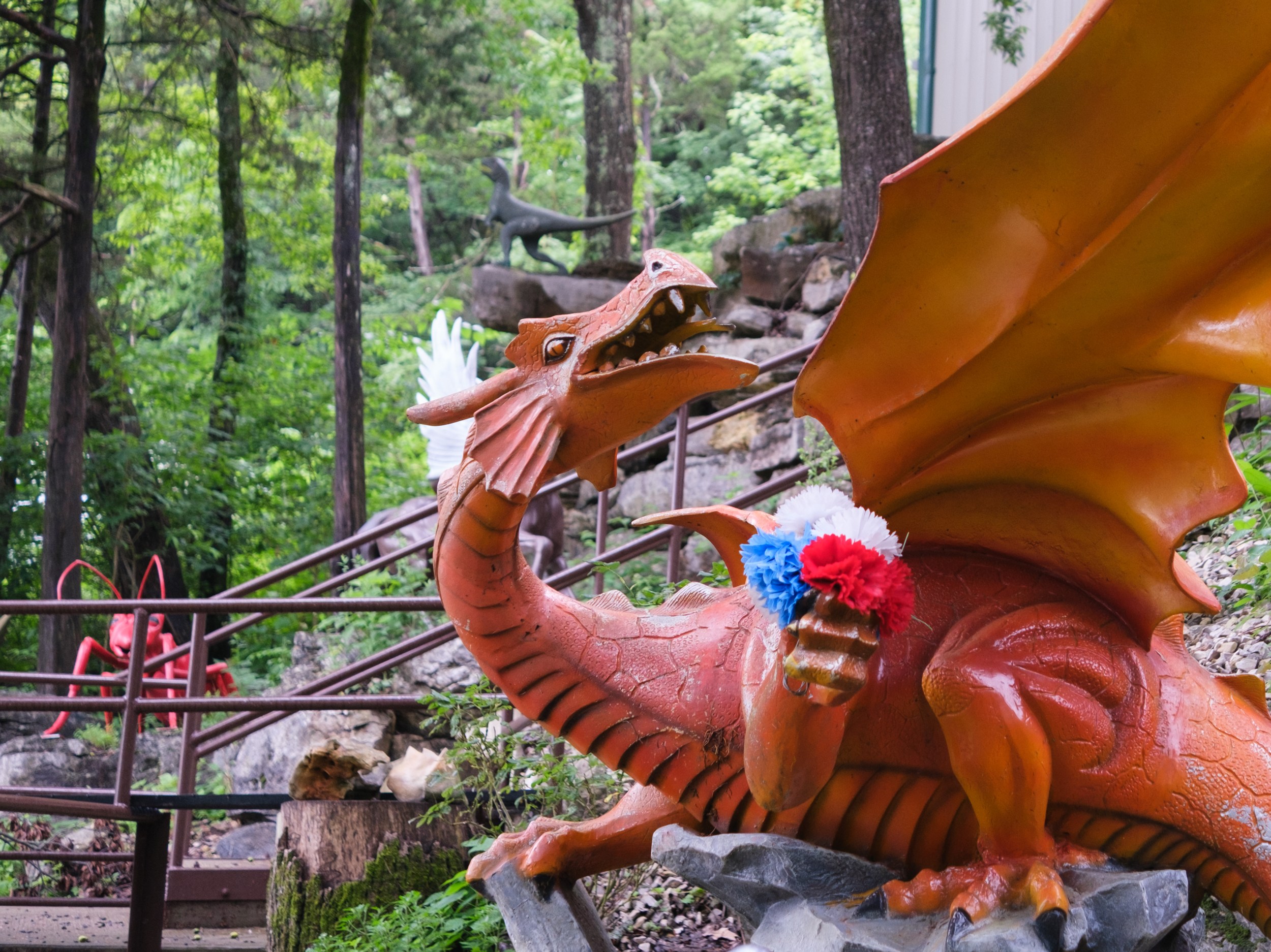 Be blessed! You are getting not one, but THREE photos this week! I was thinking recently of a trip down to Nashville, and along the way, we stopped to explore a cave in Kentucky. This was not Mammoth Cave, but Crystal Onyx Cave, and it left a remarkable impression on me. While the underground tour was awesome, I was taken in by the weirdness and style of the decor all over the grounds. Alien statues posed in vintage cars, or spaceships, or riding atop dinosaurs. There were dragons and dinosaurs and bugs and quirky art. I loved it so much! The people running the place were not afraid to get a little wacky in their designs, and it certainly filled a niche that Mammoth Cave could not.